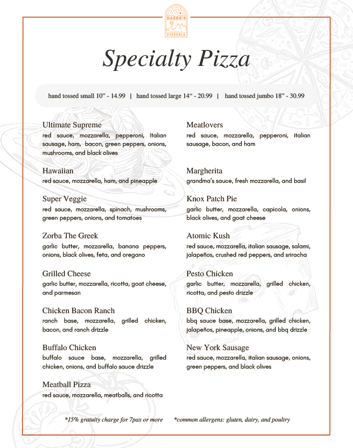 Dazzo's emphasizes quality, freshness, and a friendly dining experience, making it a must-visit for pizza lovers and food enthusiasts alike!